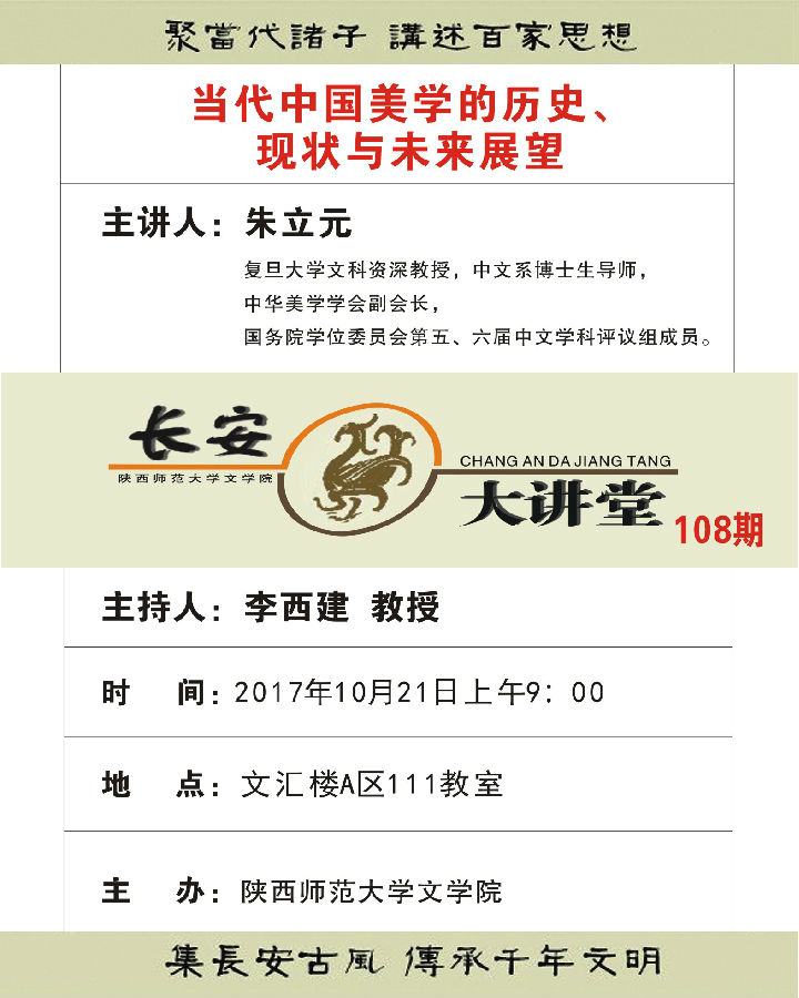 讲座题目:长安大讲坛108期:当代中国美学的历史、现状与未来展望