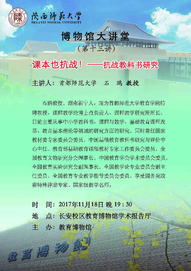 讲座题目:博物馆大讲堂:课本也抗战!——抗战教科书研究