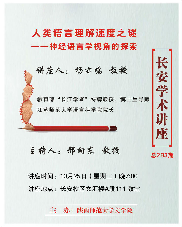 讲座题目:长安学术讲座第283期:人类语言理解速度之谜——神经语言学视角的探索