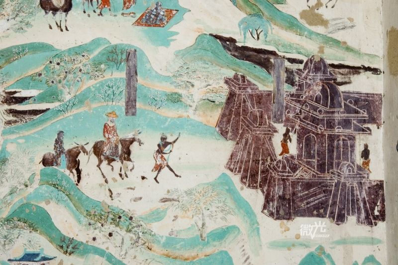 莫高窟第217窟-壁画-主室南壁-法华经变之化城喻品局部-盛唐(晚唐、五代、清重修)孙志军/摄
