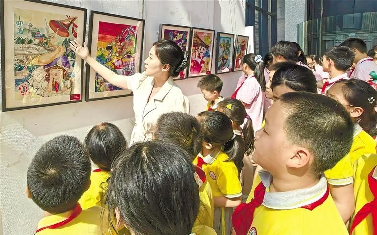 展厅内,错落有致的绘画、手工、书法等作品像跳动的音符,奏响“思政+艺术”的创新乐章,生动诠释了思政课的思想引领力和青年学子昂扬向上的精神风貌,为大中小学思政课一体化建设提供了鲜活的实践样本。
