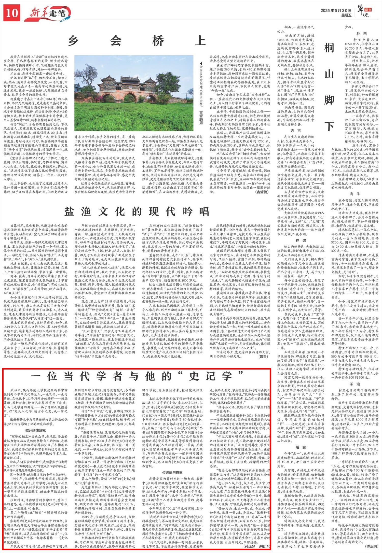 师大新闻网讯 5月30日,《新华每日电讯》在第10版“新华走笔”专版,刊发题为“一位当代学者与他的‘史记学’”的报道文章,新华社客户端、新华网同步转载报道。文章讲述了新莆京官网文学院张新科教授数十载治学为师,以孔子为师者榜样,以司马迁为学者典范,在“史记学”领域做开创性研究、在教书育人中传递爱与尊重,以生动的笔触描摹出了张新科教授的学者风范和师者情怀。